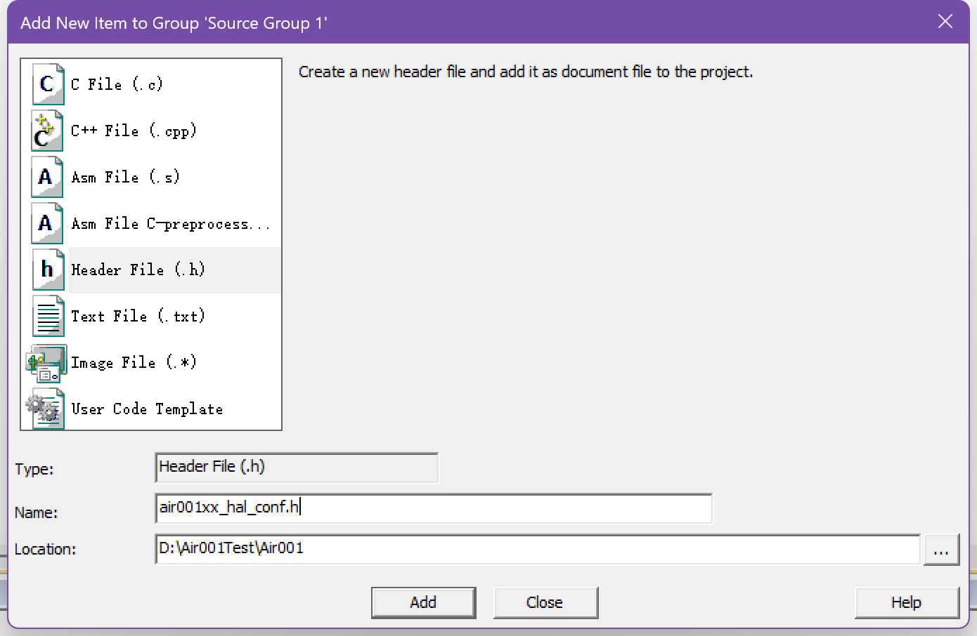 使用HAL库需要自己定义一个air001xx_hal_conf.h文件进行配置,这里我们创建一个