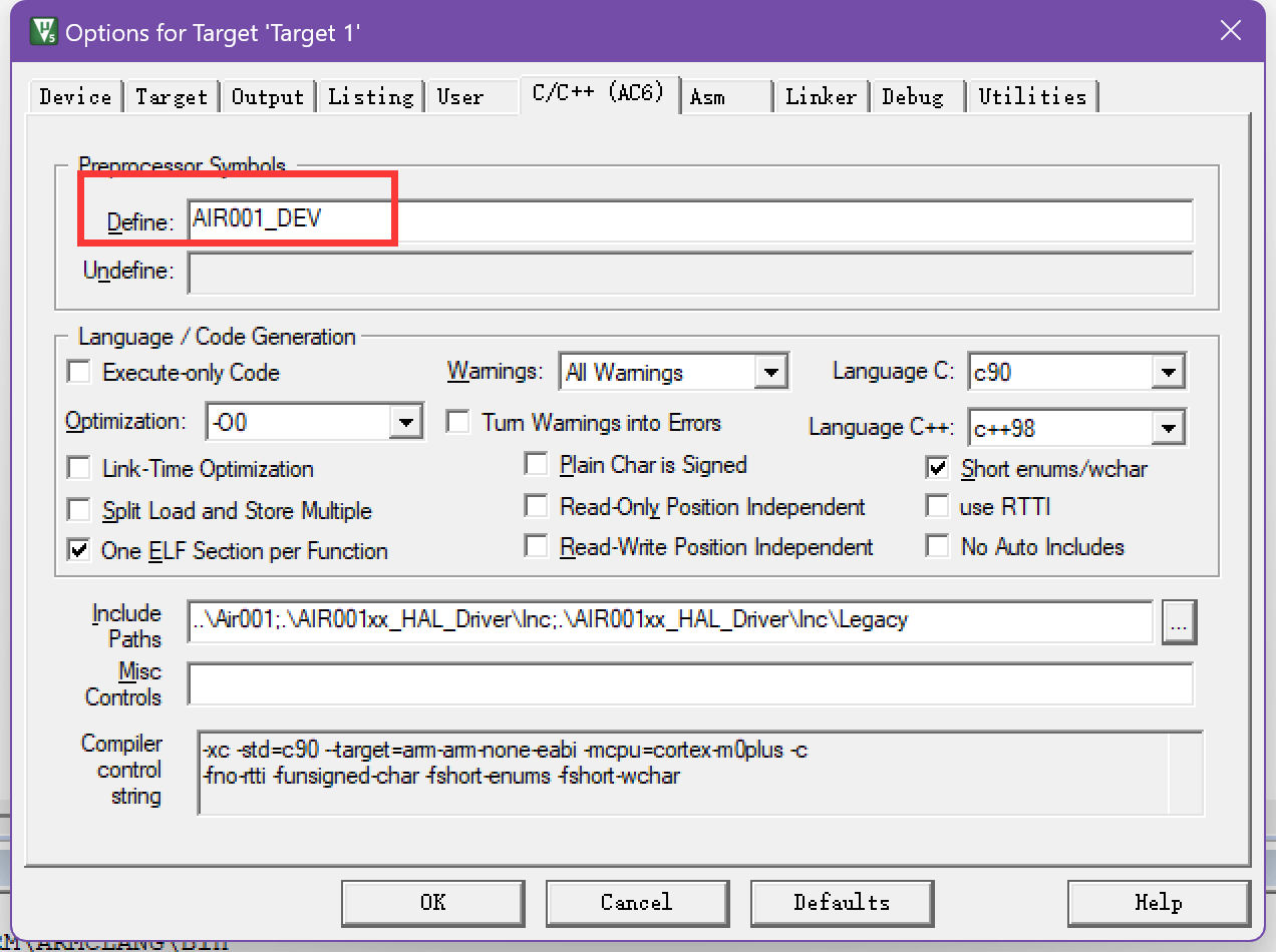 air001xx_hal_conf.h文件目录,另一个是HAL库所需的头文件目录,如下图