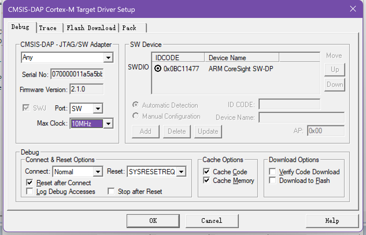 进入设置界面,Port设置为SW,Max Clock默认10MHz大概率用不了,需要手动适当降低速率到100KHz或者更低