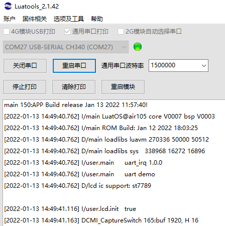 如果还没反应,检查通用串口打印是否勾选, 重新选择串口打开,或者试试点击重启串口
